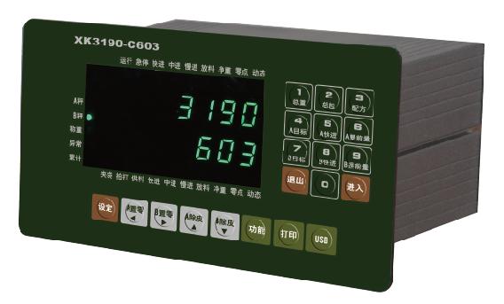 XK3190-C603是采用高速高性(xìng)能 Cortex-M3内核 32位 ARM處理器的(de)稱重儀表。本儀表(biǎo)可方便地與 2路獨立應變電阻(zǔ)稱重秤台連接組(zu)成非連續累計秤(chèng)🚩、雙鬥包裝秤等,适(shì)用于各種高速度(du)與高精度稱重要(yao)求的控制🔆場合。