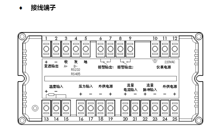 XSR流量補(bu)償積算記錄儀(yi)流量積算儀 外形尺寸及(ji)接線端子